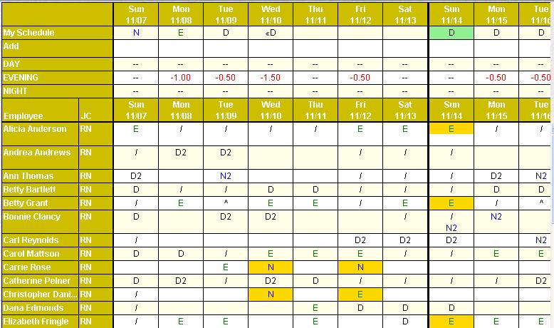 Highlight the activity code on the My Schedule portion of the self scheduling grid.
