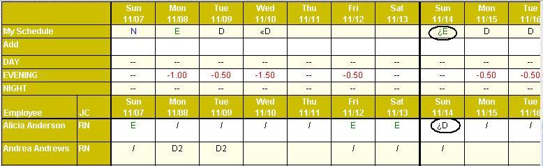 In the Employee Grid, click on the schedule to be traded.
