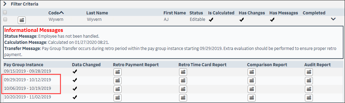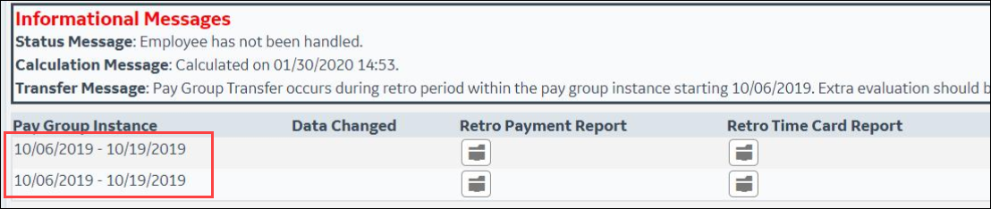 Note that an employee can only be in one retro job at a time. If they are already in a retro job and you click Set Retro Mode, a message informs you that the employee is already in a retro job.