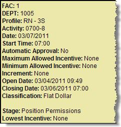 Multiple Schedule Incentive offers may appear that are identical. When a manager originally set up the schedule offer, there may have been multiple employees needed during that shift. For example, if there are usually five RNs scheduled during a certain timeframe and three RNs have been scheduled, that leaves a need of two more RNs. So the manager may decide to create two Schedule Incentive offers. This causes you to see multiple offers that appear identical.