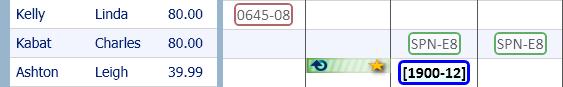 displays on the days that employees have a Schedule Incentive request. When a Schedule Incentive record is checked in the Requests grid, the icons of all employees submitting bids for that record are highlighted with a dark border in the schedule grid