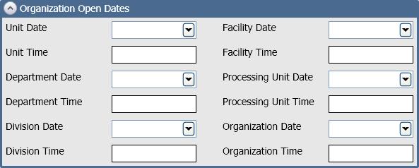 If needed, enter or update the Open Date, Open Time, Close Date, and Close Time.