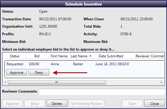 In the Reviewer Comments field, enter comments about your approval or denial of the Schedule Incentive request.