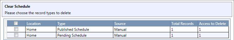 Select the boxes for the rows of the schedules you need to clear.