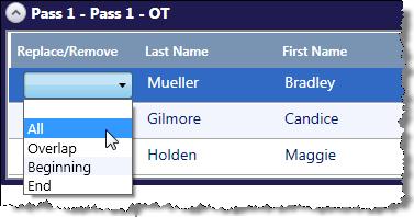 9. For the employees you would like to remove from the schedule, click the drop-down menu in the Replace/Remove column.