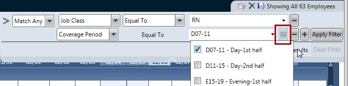 Click on the Apply Filter button to load this filter to the schedule screen. Only employees who meet the criteria are listed.